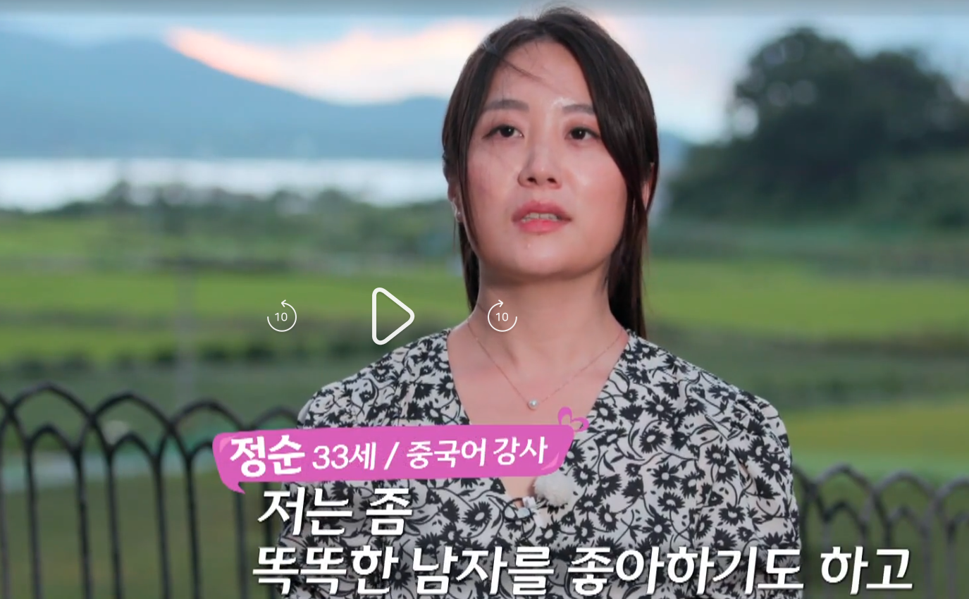 | 정숙 | 1994년생 | TBN한국교통방송 캐스터 | "착하고 눈빛 선한 사람, 잦은 만남 선호, 장거리 힘듦, 폴댄스 경력" | @yeejinkim |